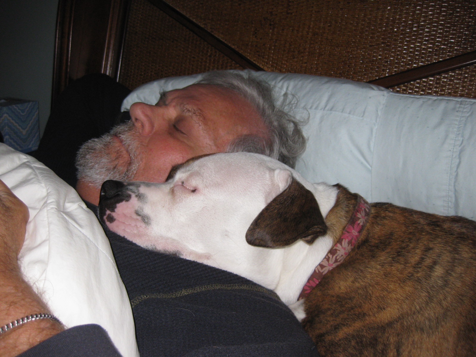 Miss Josie is a pitbull rescue dog. She was abandoned in an alley way in Richmond, VA in January, 2011 – without food or water but with nine brand new puppies. After several days, she and he puppies were rescued and placed in a foster home. All nine puppies survived and were adopted. We took her and she has been a delight – loves everyone and everybody. Trust her completely with other people and animals. She is an ambassador for her breed.