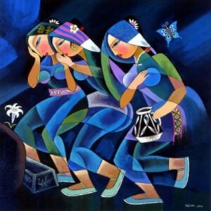 As they stood there puzzled, two men suddenly appeared to them, clothed in dazzling robes. The women were terrified and bowed with their faces to the ground.