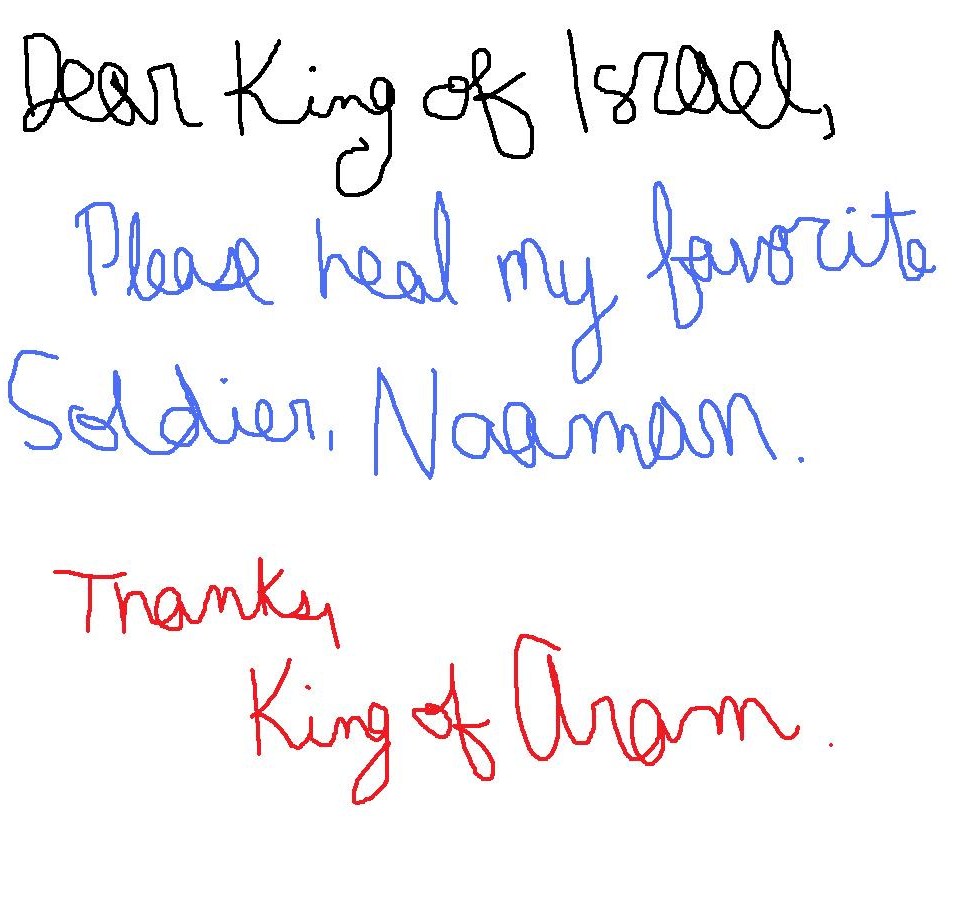 So Naaman told the king what the young girl from Israel had said. “Go and visit the prophet,” the king of Aram told him. “I will send a letter of introduction for you to take to the king of Israel.” So Naaman started out, carrying as gifts 750 pounds of silver, 150 pounds of gold, and ten sets of clothing. The letter to the king of Israel said: “With this letter I present my servant Naaman. I want you to heal him of his leprosy.”