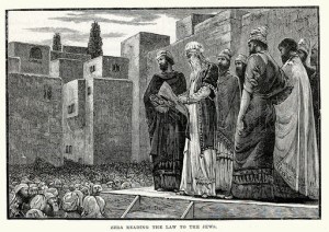 Nehemiah 8:1, 5-6, 8-12 (NLT) – In October, when the Israelites had settled in their towns, all the people assembled with a unified purpose at the square just inside the Water Gate. They asked Ezra the scribe to bring out the Book of the Law of Moses, which the Lord had given for Israel to obey….
