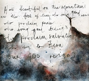 How beautiful on the mountains are the feet of the messenger who brings good news, the good news of peace and salvation, the news that the God of Israel reigns! The watchmen shout and sing with joy, for before their very eyes they see the Lord returning to Jerusalem. Let the ruins of Jerusalem break into joyful song, for the Lord has comforted his people. He has redeemed Jerusalem. The Lord has demonstrated his holy power before the eyes of all the nations. All the ends of the earth will see the victory of our God.