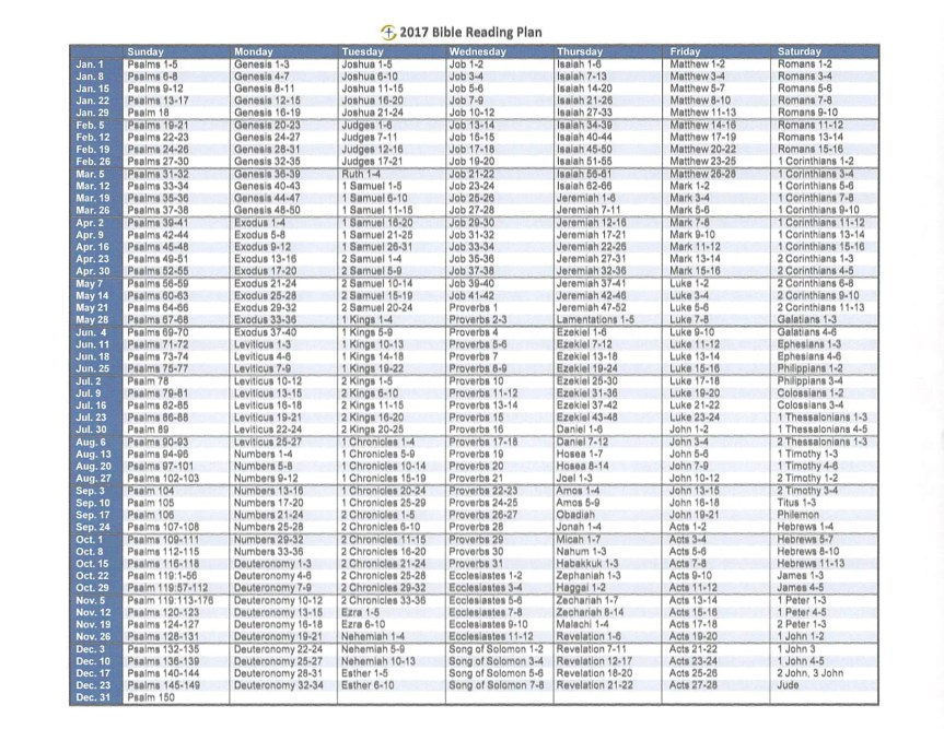 Please refer to the charts below to see where we have been, and where we are going. We have been following a Year Through The Bible Plan adapted from Samaritan’s Purse.