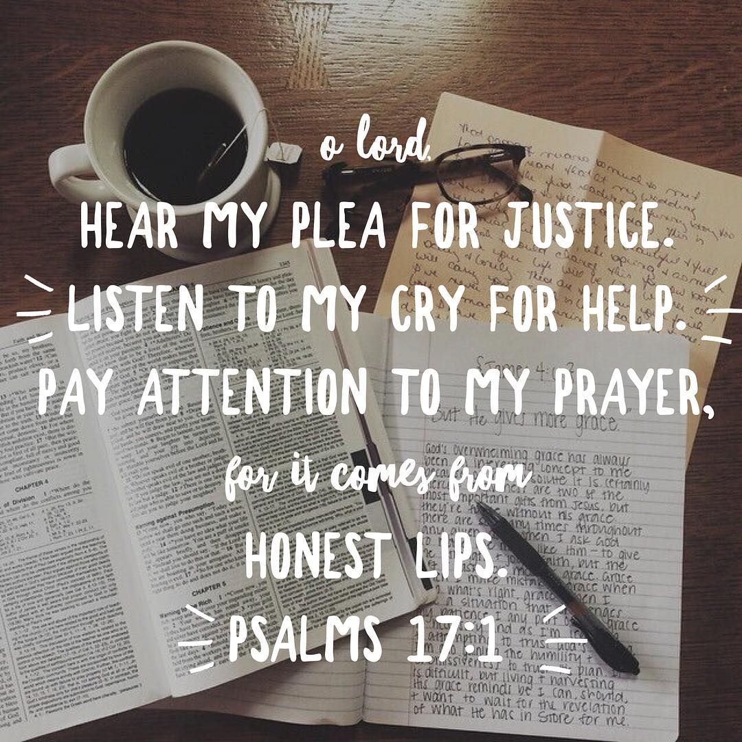 O Lord, hear my plea for justice. Listen to my cry for help. Pay attention to my prayer, for it comes from honest lips. Declare me innocent, for you see those who do right.