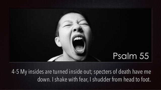 My heart pounds in my chest. The terror of death assaults me. Fear and trembling overwhelm me, and I can’t stop shaking. Oh, that I had wings like a dove; then I would fly away and rest! I would fly far away to the quiet of the wilderness.