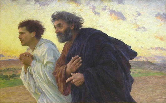 Early on Sunday morning, while it was still dark, Mary Magdalene came to the tomb and found that the stone had been rolled away from the entrance. She ran and found Simon Peter and the other disciple, the one whom Jesus loved. She said, “They have taken the Lord’s body out of the tomb, and we don’t know where they have put him!”