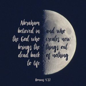 This happened because Abraham believed in the God who brings the dead back to life and who creates new things out of nothing.