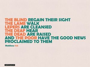 Jesus told them, “Go back to John and tell him what you have heard and seen— the blind see, the lame walk, those with leprosy are cured, the deaf hear, the dead are raised to life, and the Good News is being preached to the poor.” And he added, “God blesses those who do not fall away because of me.”