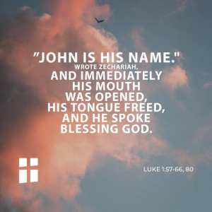 1:57 Now the time came for Elizabeth to give birth, and she bore a son. And her neighbors and relatives heard that the Lord had shown great mercy to her, and they rejoiced with her. And on the eighth day they came to circumcise the child. And they would have called him Zechariah after his father, but his mother answered, “No; he shall be called John.” And they said to her, “None of your relatives is called by this name.” And they made signs to his father, inquiring what he wanted him to be called. And he asked for a writing tablet and wrote, “His name is John.” And they all wondered. And immediately his mouth was opened and his tongue loosed, and he spoke, blessing God. And fear came on all their neighbors. And all these things were talked about through all the hill country of Judea, and all who heard them laid them up in their hearts, saying, “What then will this child be?” For the hand of the Lord was with him.