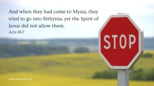 16:6 And they went through the region of Phrygia and Galatia, having been forbidden by the Holy Spirit to speak the word in Asia. And when they had come up to Mysia, they attempted to go into Bithynia, but the Spirit of Jesus did not allow them. So, passing by Mysia, they went down to Troas.