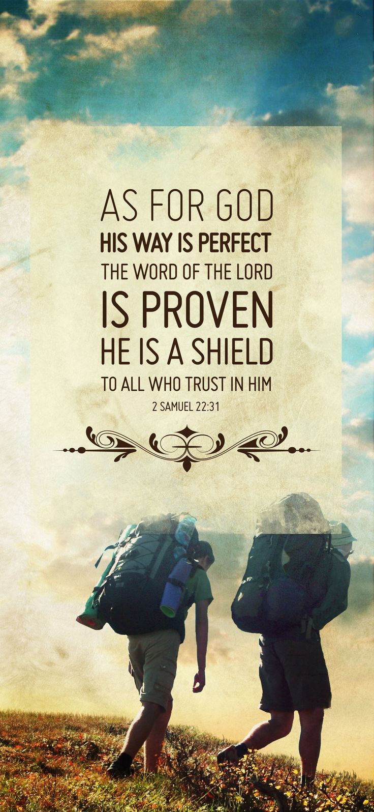 “God’s way is perfect. All the Lord’s promises prove true. He is a shield for all who look to him for protection. For who is God except the Lord? Who but our God is a solid rock? God is my strong fortress, and he makes my way perfect. He makes me as surefooted as a deer, enabling me to stand on mountain heights. He trains my hands for battle; he strengthens my arm to draw a bronze bow. You have given me your shield of victory; your help has made me great. You have made a wide path for my feet to keep them from slipping.