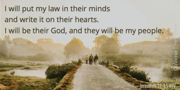 “But this is the new covenant I will make with the people of Israel after those days,” says the Lord. “I will put my instructions deep within them, and I will write them on their hearts. I will be their God, and they will be my people. And they will not need to teach their neighbors, nor will they need to teach their relatives, saying, ‘You should know the Lord.’ For everyone, from the least to the greatest, will know me already,” says the Lord. “And I will forgive their wickedness, and I will never again remember their sins.”