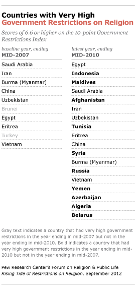 on Religion & Public Life. Restrictions on religion rose in each of the five major regions of the world – including in the Americas and sub-Saharan Africa, the two regions where overall restrictions previously had been declining.