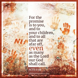 Peter replied, “Each of you must repent of your sins and turn to God, and be baptized in the name of Jesus Christ for the forgiveness of your sins. Then you will receive the gift of the Holy Spirit. This promise is to you, to your children, and to those far away—all who have been called by the Lord our God.” Then Peter continued preaching for a long time, strongly urging all his listeners, “Save yourselves from this crooked generation!”