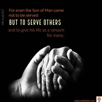 + A leader must serve first – When the ten other disciples heard what James and John had asked, they were indignant. But Jesus called them together and said, “You know that the rulers in this world lord it over their people, and officials flaunt their authority over those under them. But among you it will be different. Whoever wants to be a leader among you must be your servant, and whoever wants to be first among you must become your slave. For even the Son of Man came not to be served but to serve others and to give his life as a ransom for many.”