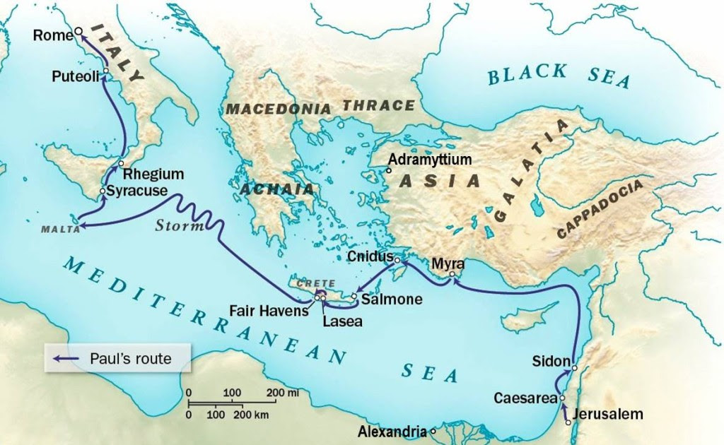 Acts 27:1-12 (NLT) – When the time came, we set sail for Italy. Paul and several other prisoners were placed in the custody of a Roman officer named Julius, a captain of the Imperial Regiment. Aristarchus, a Macedonian from Thessalonica, was also with us. We left on a ship whose home port was Adramyttium on the northwest coast of the province of Asia; it was scheduled to make several stops at ports along the coast of the province.