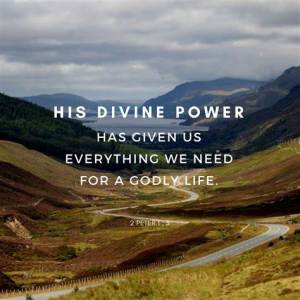 1:3 By his divine power, God has given us everything we need for living a godly life. We have received all of this by coming to know him, the one who called us to himself by means of his marvelous glory and excellence. 4 And because of his glory and excellence, he has given us great and precious promises. These are the promises that enable you to share his divine nature and escape the world’s corruption caused by human desires.