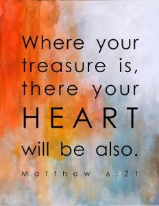 6:19 “Do not lay up for yourselves treasures on earth, where moth and rust destroy and where thieves break in and steal, but lay up for yourselves treasures in heaven, where neither moth nor rust destroys and where thieves do not break in and steal. For where your treasure is, there your heart will be also.