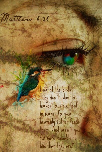 “That is why I tell you not to worry about everyday life—whether you have enough food and drink, or enough clothes to wear. Isn’t life more than food, and your body more than clothing? Look at the birds. They don’t plant or harvest or store food in barns, for your heavenly Father feeds them. And aren’t you far more valuable to him than they are? Can all your worries add a single moment to your life?
