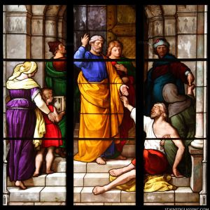 3:1 Now Peter and John were going up to the temple at the hour of prayer, the ninth hour. And a man lame from birth was being carried, whom they laid daily at the gate of the temple that is called the Beautiful Gate to ask alms of those entering the temple. Seeing Peter and John about to go into the temple, he asked to receive alms. And Peter directed his gaze at him, as did John, and said, “Look at us.” And he fixed his attention on them, expecting to receive something from them. But Peter said, “I have no silver and gold, but what I do have I give to you. In the name of Jesus Christ of Nazareth, rise up and walk!” And he took him by the right hand and raised him up, and immediately his feet and ankles were made strong. And leaping up, he stood and began to walk, and entered the temple with them, walking and leaping and praising God. And all the people saw him walking and praising God, and recognized him as the one who sat at the Beautiful Gate of the temple, asking for alms. And they were filled with wonder and amazement at what had happened to him.