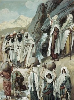 + God supplies – The Lord said to Moses, “Walk out in front of the people. Take your staff, the one you used when you struck the water of the Nile, and call some of the elders of Israel to join you. I will stand before you on the rock at Mount Sinai. Strike the rock, and water will come gushing out. Then the people will be able to drink.” So Moses struck the rock as he was told, and water gushed out as the elders looked on.